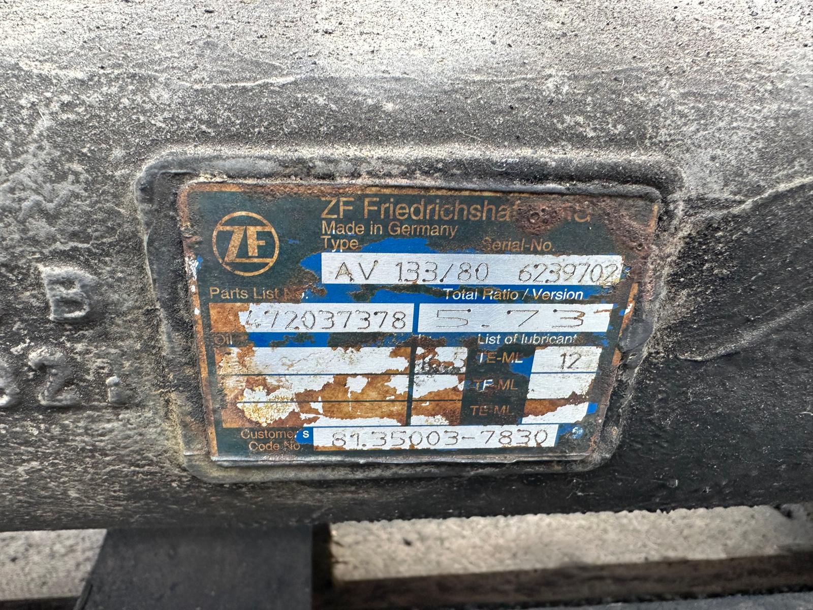 | Teilebeschreibung: | Hinterachse 133/80. 5,73 für MAN Lions City mit nur ca 90.000 km |